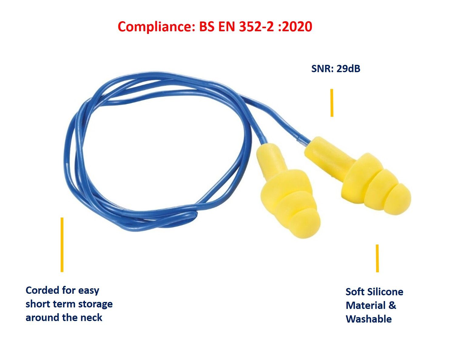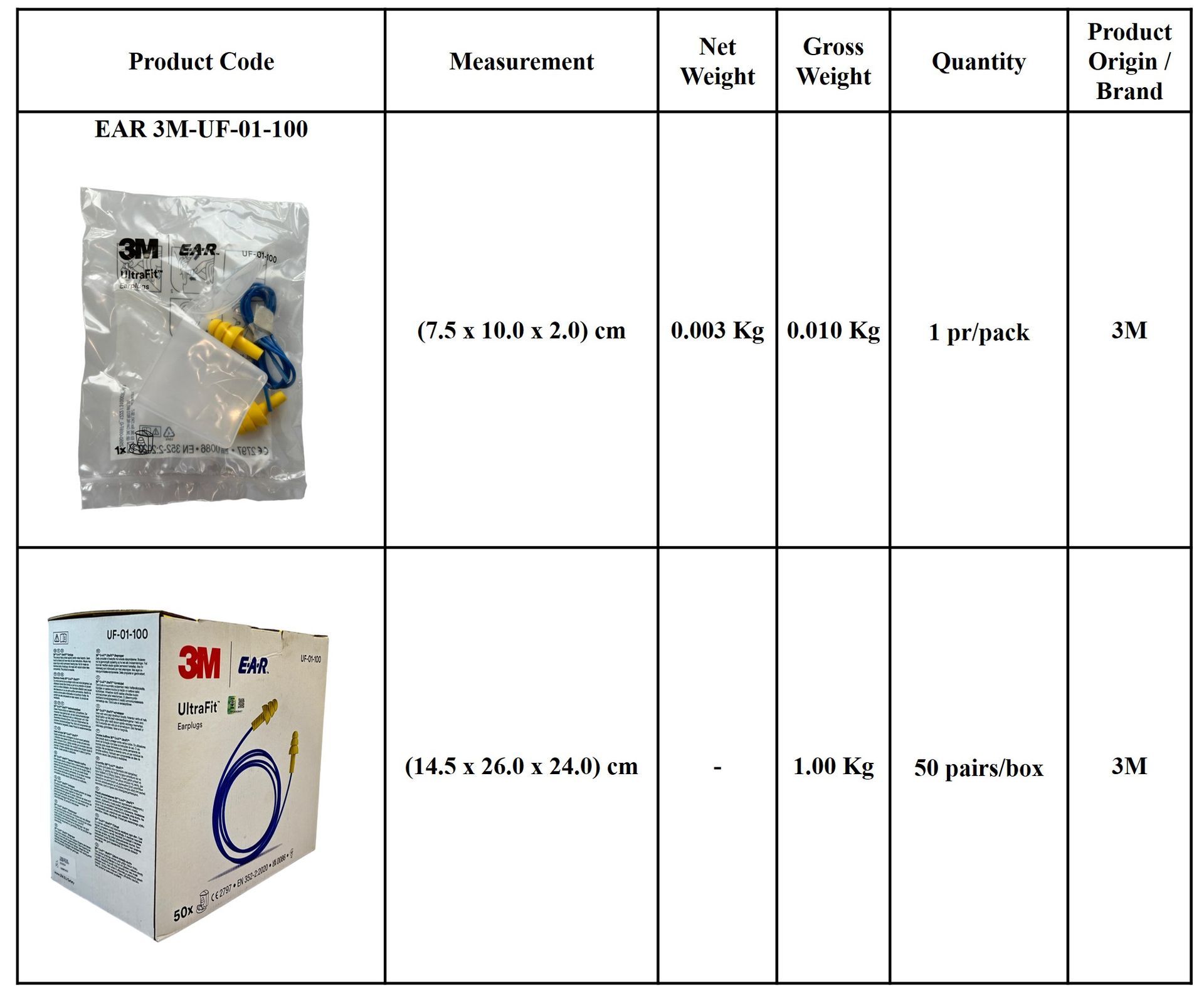 E-A-R™ Ultrafit™ Earplugs UF-01-100 is a reusable ear plug offers high quality hearing protection and is lightweight, comfortable and easy-to-use for workers in a wide variety of industrial and commercial applications. It is made up of a triple-flange design to meet different shapes and sizes of ear canals which offers comfort to users. These earplugs are made up of soft polymer, with vinyl cord material. Noise Reduction Rating (NRR)*: 25dB and the Single Number Rating (SNR)*: 29dB.