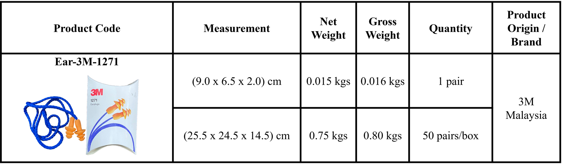 Home / Personal Protective Equipment / Ear 3M™ 1271 Reusable Ear Plug, Corded (NRR 26 dB)