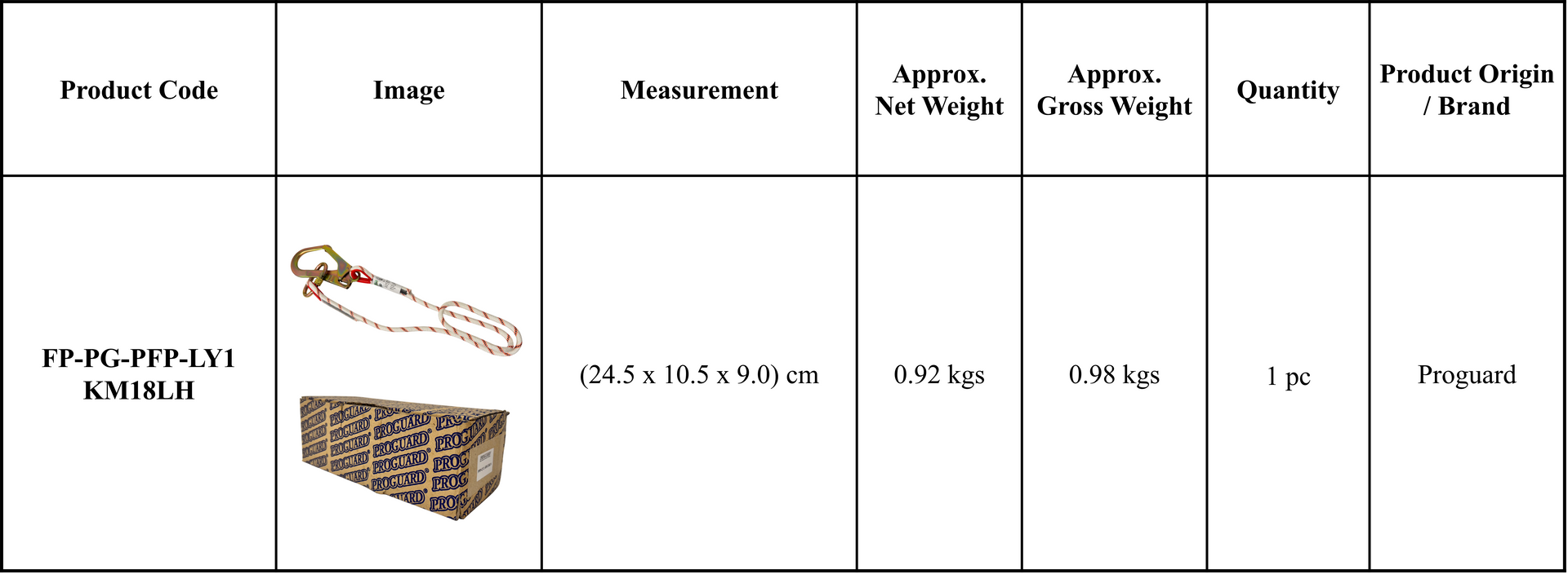 Home / Personal Protective Equipment / FP-PG-PFP-LY1-KM18LH Single Kernmantle Lanyard 1.8M - Large Hook