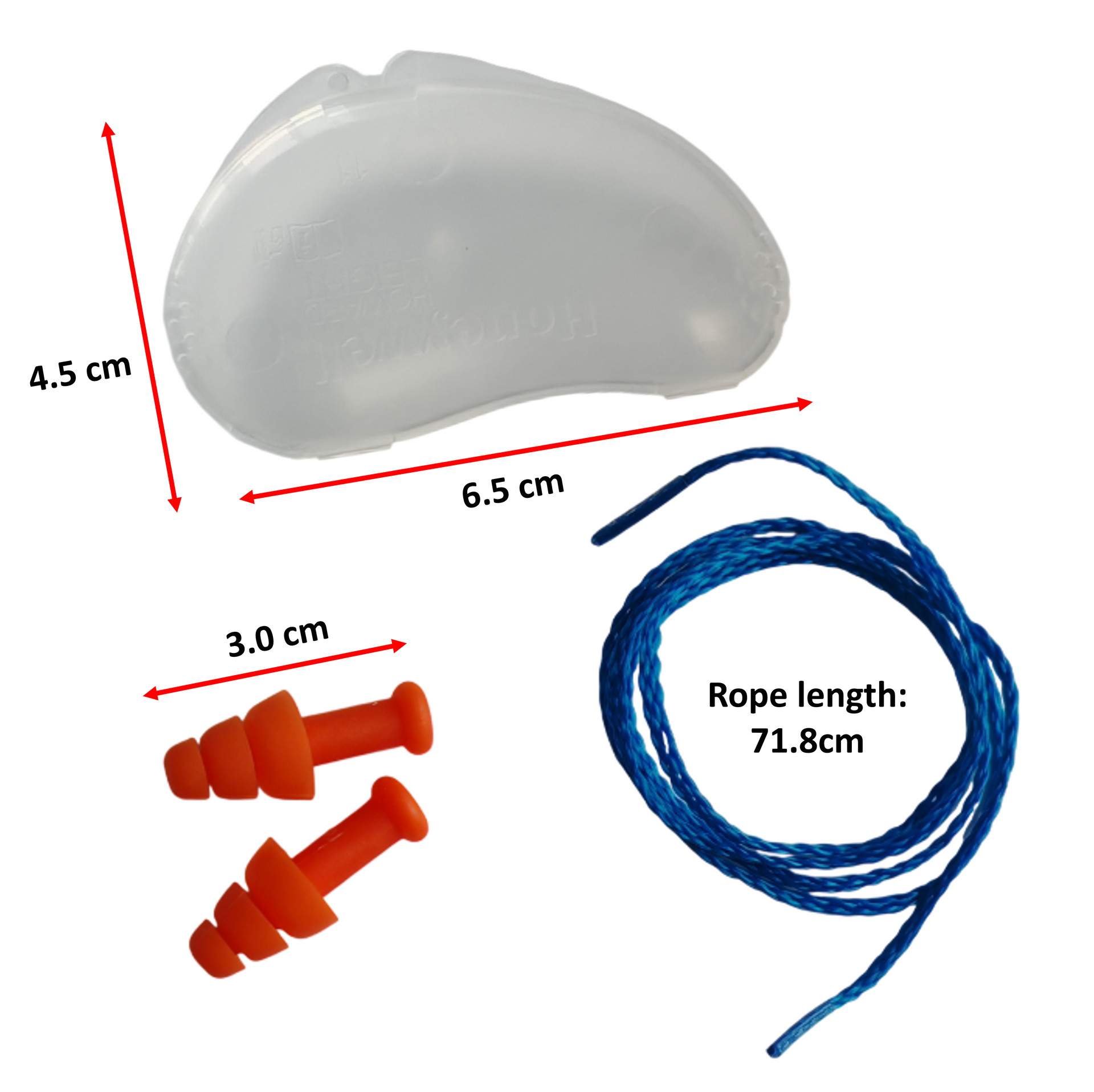 Washable plug, easy-to-use and comes with a plastic storage case. One size designed to fit most. Users able to use with or without a cord. Cord material is from nylon. Noise Reduction Rating (NRR)*: 25dB and the Single Number Rating (SNR)*: 30dB.