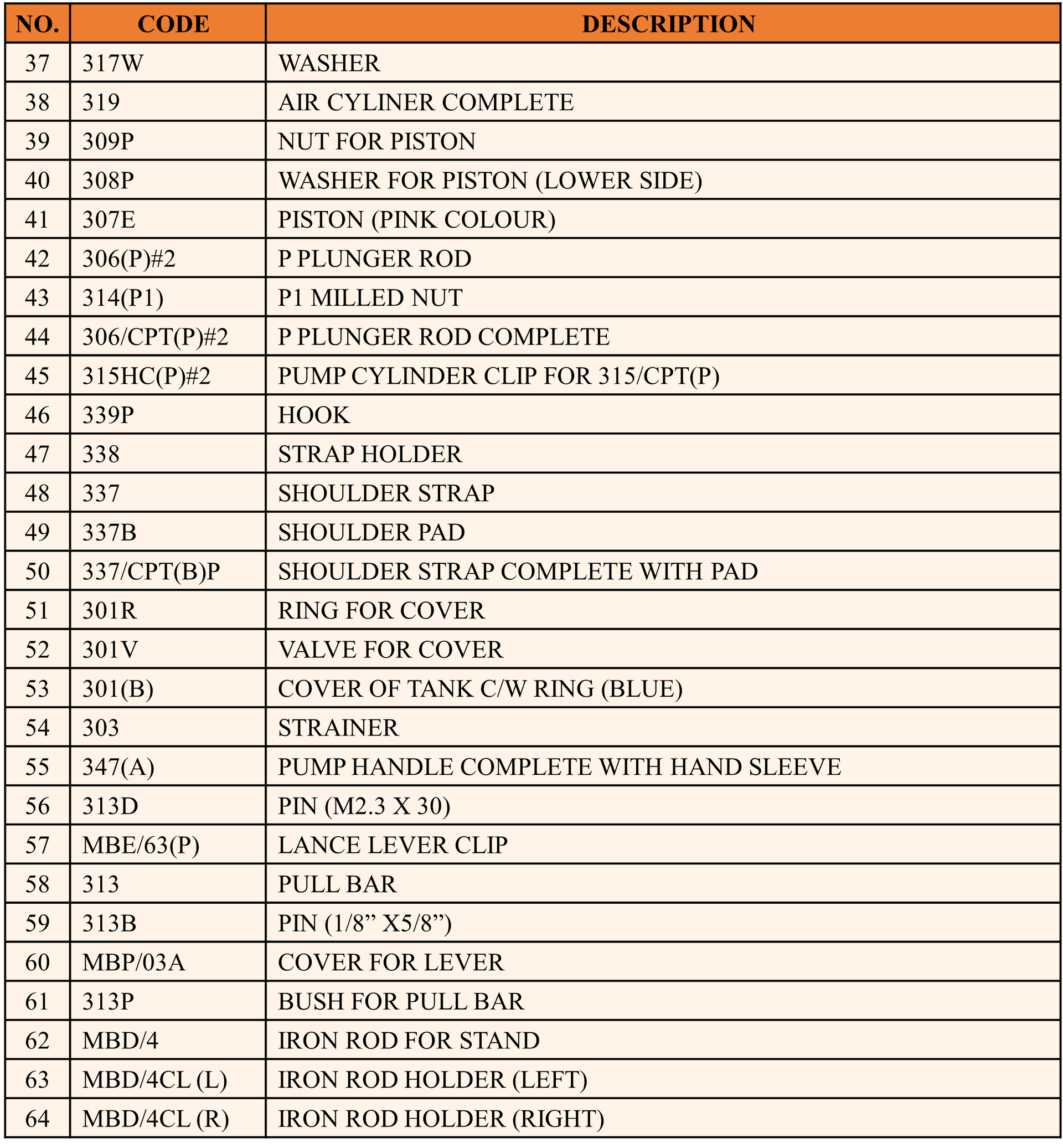 - The pump handle [347(A)] can be fixed for right or left hand operation, then pumping upward and downward repeatedly for 5 or 6 strokes to build up pressure. Squeezing the trigger [321/CPT(P#2)] will allow the liquid to flow into the spraying lance and spray out through the nozzle at a certain pressure.