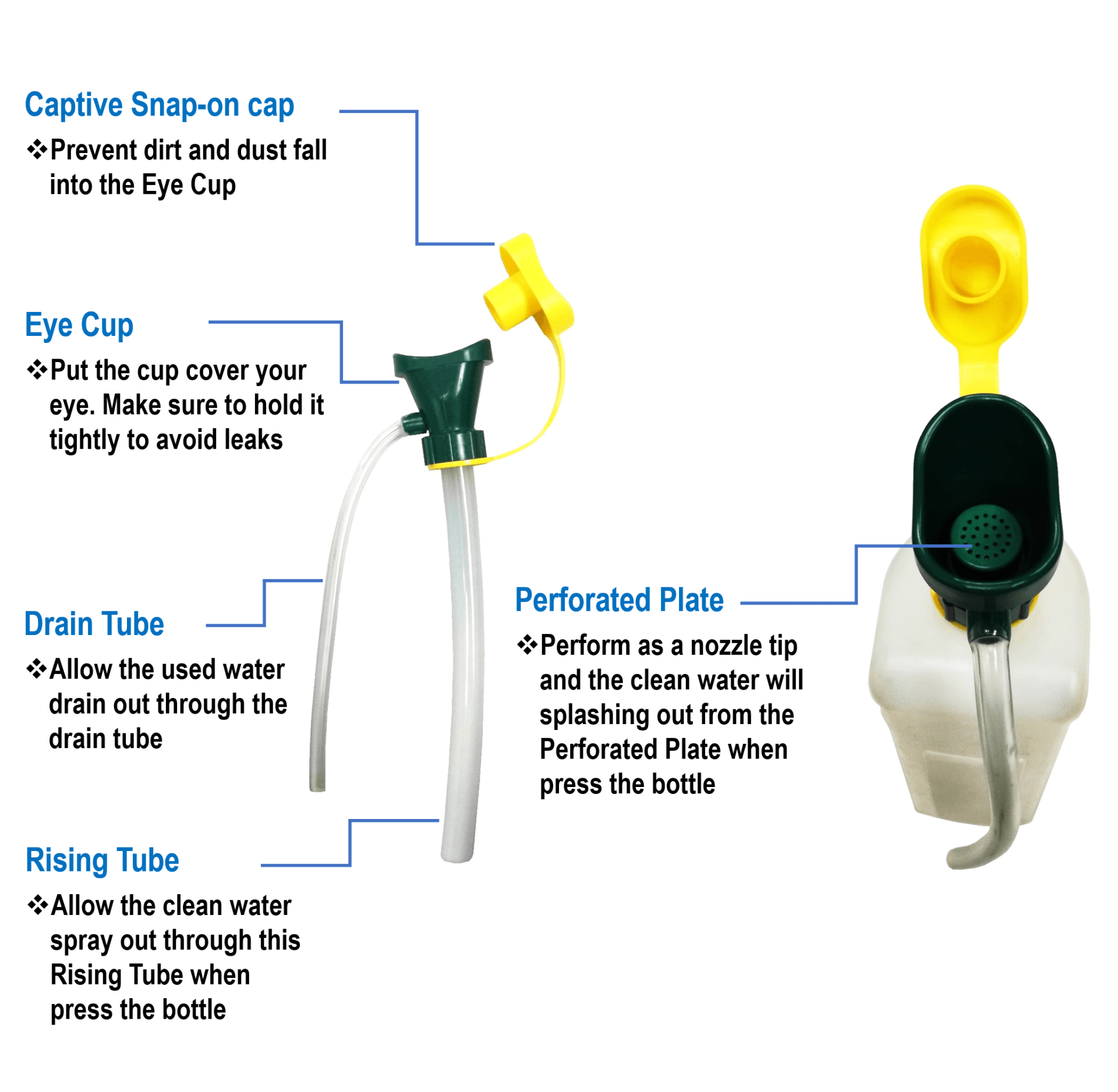 - For immediate emergency flushing of eye injuries, provides fast and effective relief.