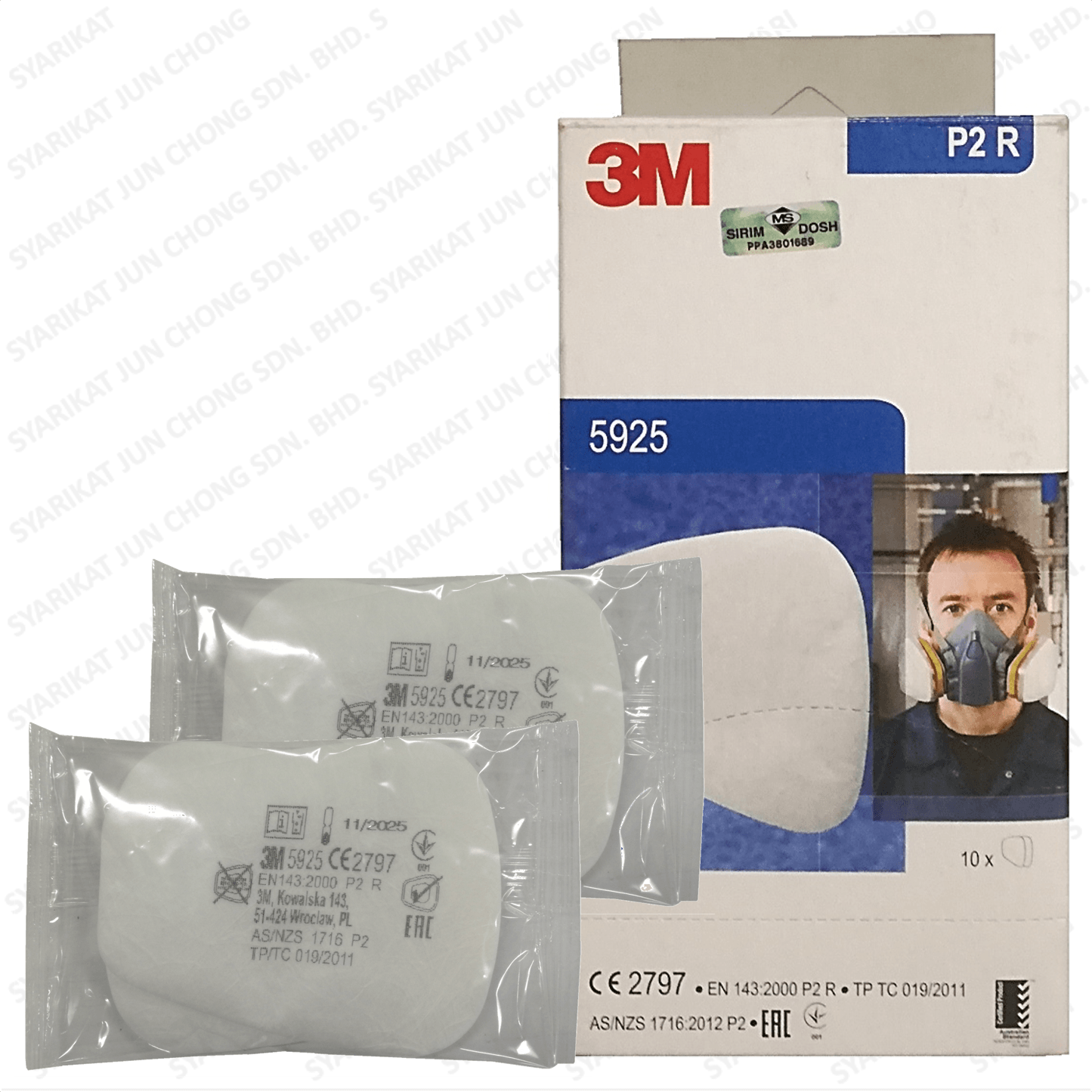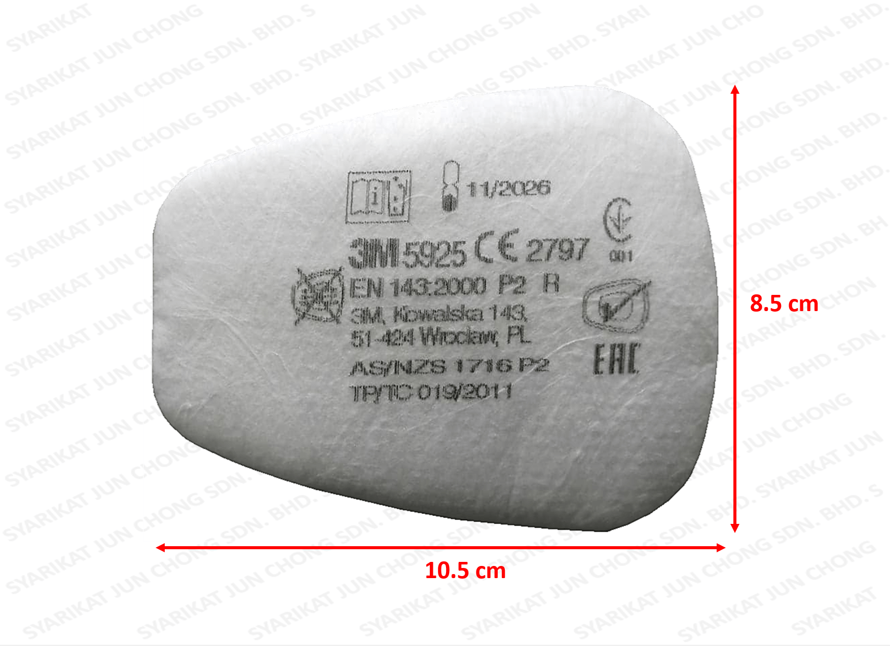 3M™ 5925 P2 R Particulate Filter protect against airborne particles including fine dust and water/oil-based mists. Must combine with a 3M™ Gas and Vapors Cartridges Filter 6000 Series using 3M™ Retainer 501. This lightweight particulate filters help you work safely in hazardous environments & they’re designed to optimize your field of vision.