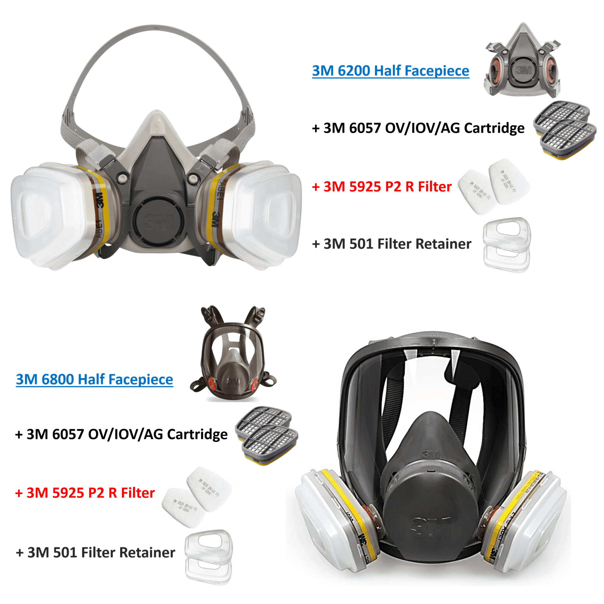- Suitable for use with all 3M half and full facepiece when combined a 3M™ Retainer 501 with 3M™ Gas and Vapor Filter 6000 Series