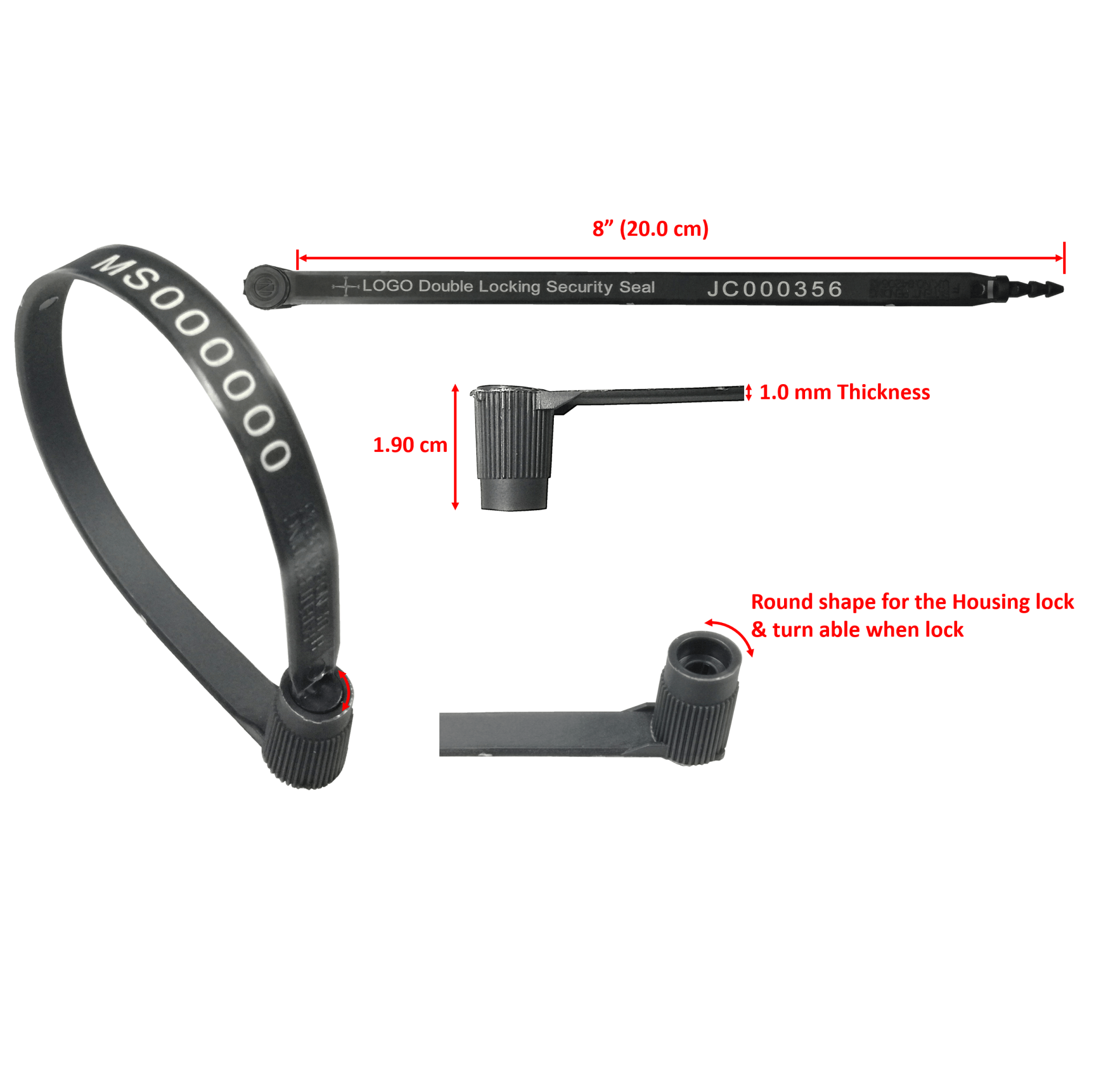 NATIONAL 8″ DOUBLE LOCKING SECURITY PLATE SEAL is a tamper-proof, thermoplastic moulded device that has the advantage of a non-corrosive security seal and no sharp edges that may cut hands. In order to prevent duplication, consecutive serial numbering is closely monitored within our organization. This is done by marking the plate seal with UV Laser Print which can include the customer’s name and/or logo. Suitable use for containers, oil tankers, depots, warehouses, drums, pipe meters and etc.