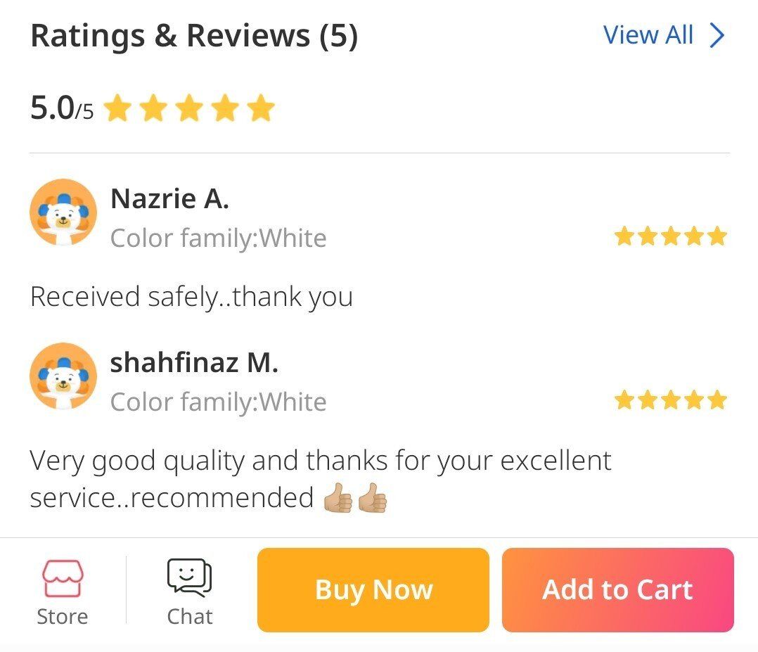Enjoy FREE RETURN with the reason of "Change of Mind" if you are not satisfied with the order as per offered by our channel platforms.