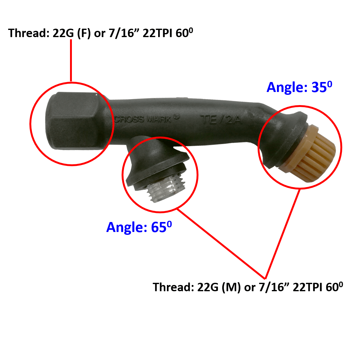 Ideal to reach the target effectively at different angles spray and to keep the operator away from direct contamination of spraying chemicals. Upperside 35° and other side 65°. Can be used 2 nozzles at the same time to get wider coverage.
