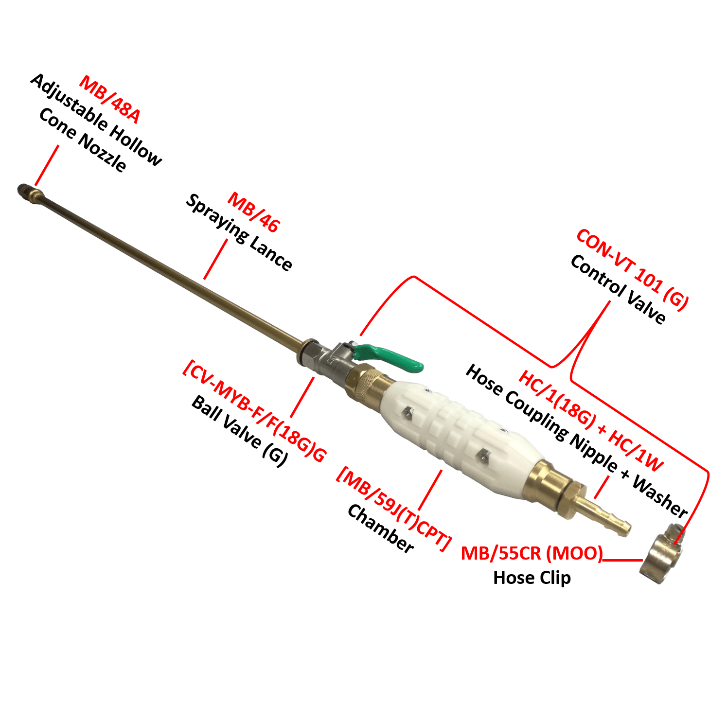 This CON-VT 101 Control Valve is made from durable brass material and an anti-slip chamber designed. It is ideal to use with a high-pressure engine pump for spraying jobs. The filter inside the chamber prevents dirt or soil from clogging the nozzle tip. Due to its 18(G) threaded, It can fix with Hose Coupling, Spraying Lance, Adaptor, and other Accessories to meet users' requirements easily. Ideal use with engine output pressure pump less than 45 Bar
