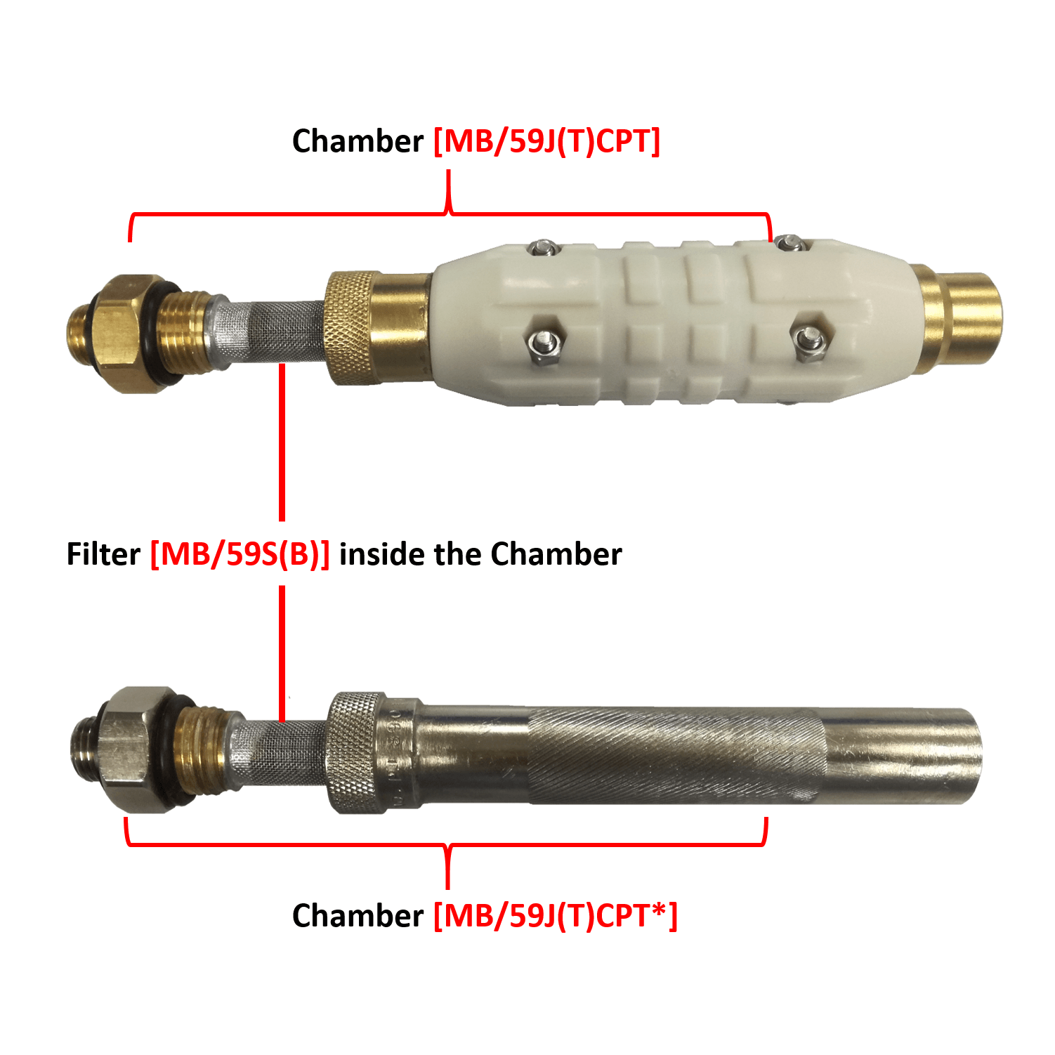 - Filter inside the chamber to prevent dirt or soil clogging at the nozzle tip