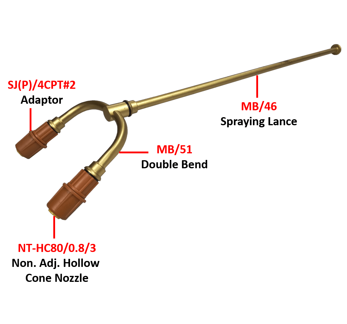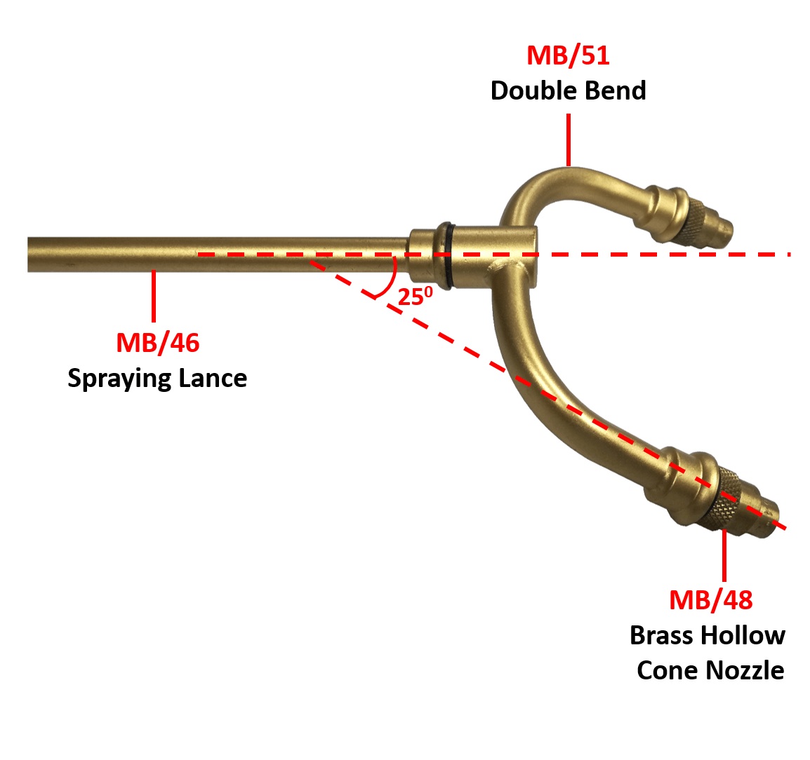 It is designed to provide wider coverage and ideal use for high-density foliage spraying. The Interval the between Nozzle is 4" and the length is 3". Ideal for installation with 2 pieces of cone-type nozzles. With the downward angle to keep the operator away from direct contamination of spraying chemicals.