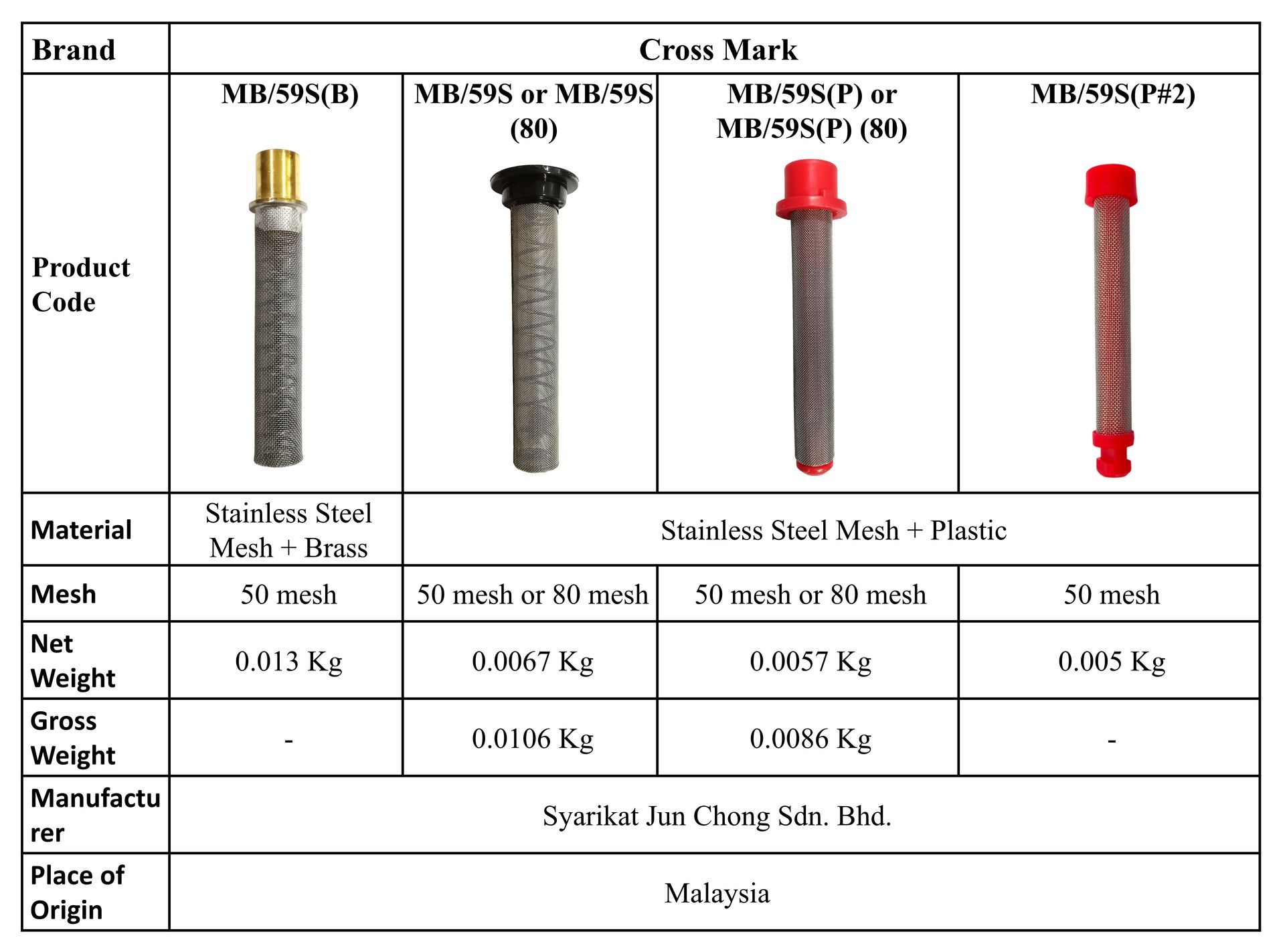These 3 types of Filter are suitable to use with different Cleaning chambers respectively. They are made from Stainless Steel Mesh, not easy to rust and damage. It can filter very fine sediments, sand, and dirt more effectively to prevent clogging at Trigger / Automatic Release and Nozzle Tip. 50 mesh or 80 mesh are available to meet users' requirements easily.