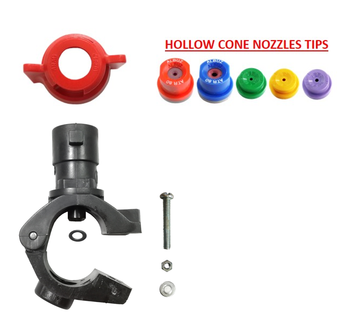 - ½” hinged Clamp type nozzle holder with quick coupling complete with Standard Bayonet Caps for quick fitting nozzle.